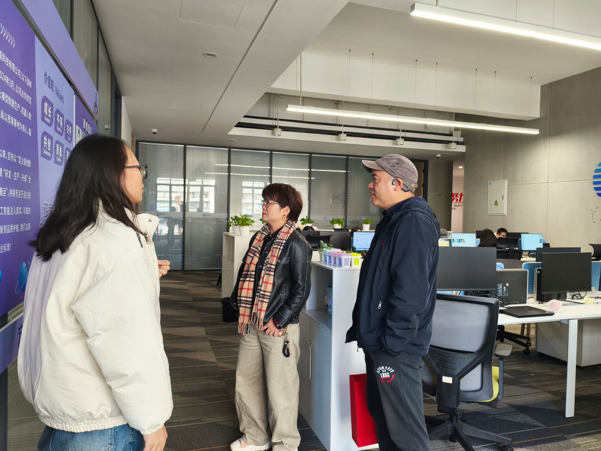 李小辉书记一行实地参观了沐晨科技的办公环境、技术研发区域及项目展示空间,肖顺经理详细介绍了公司的发展历程、组织架构、团队建设及运营概况。
