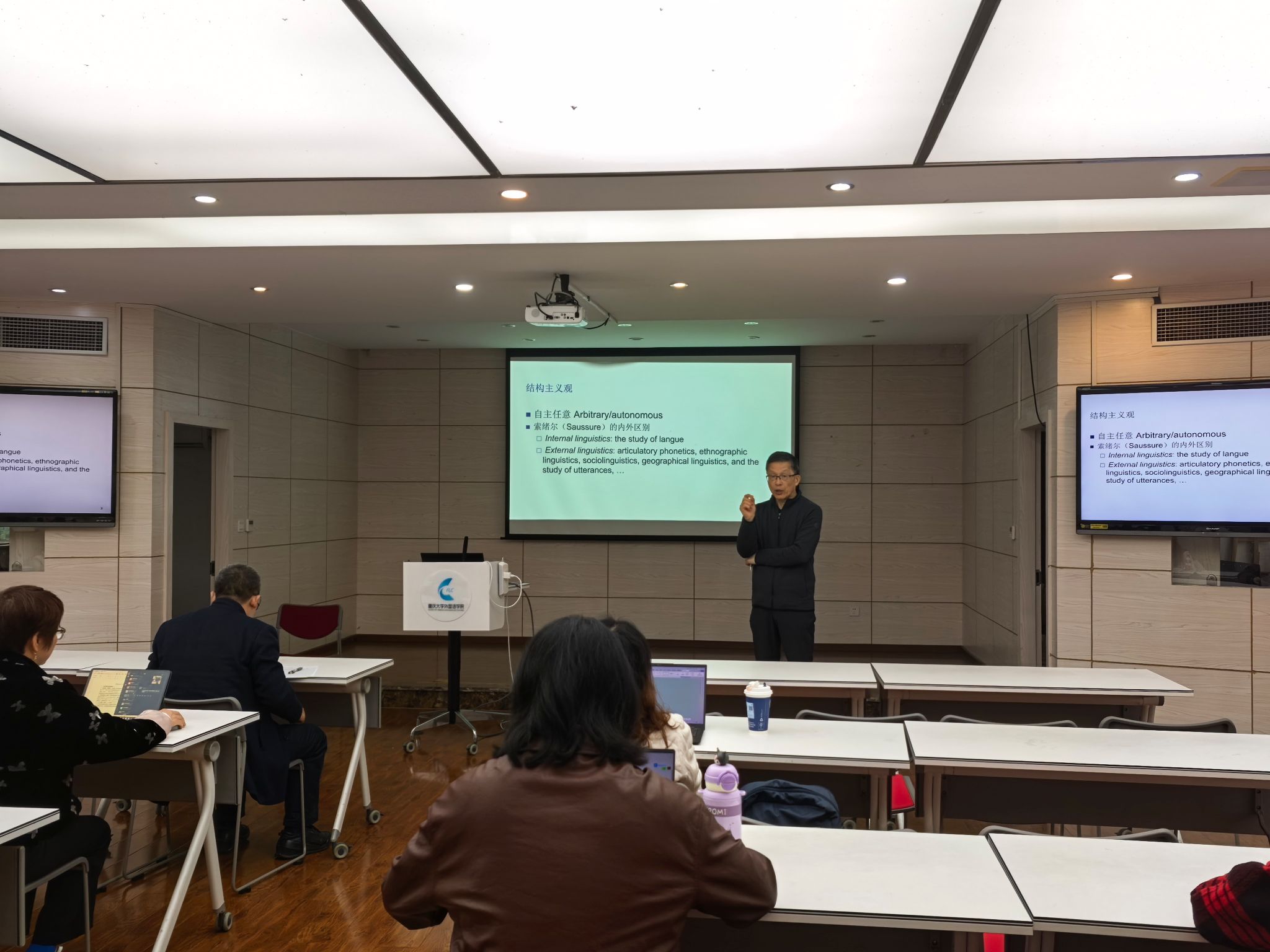 501学术报告厅为我院师生带来了题为“竞争动因:从语言结构到多模态互动交际”的学术座谈会。本次座谈会由杨小虎副院长主持。