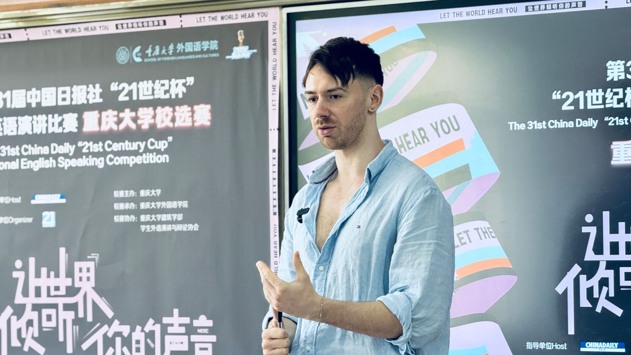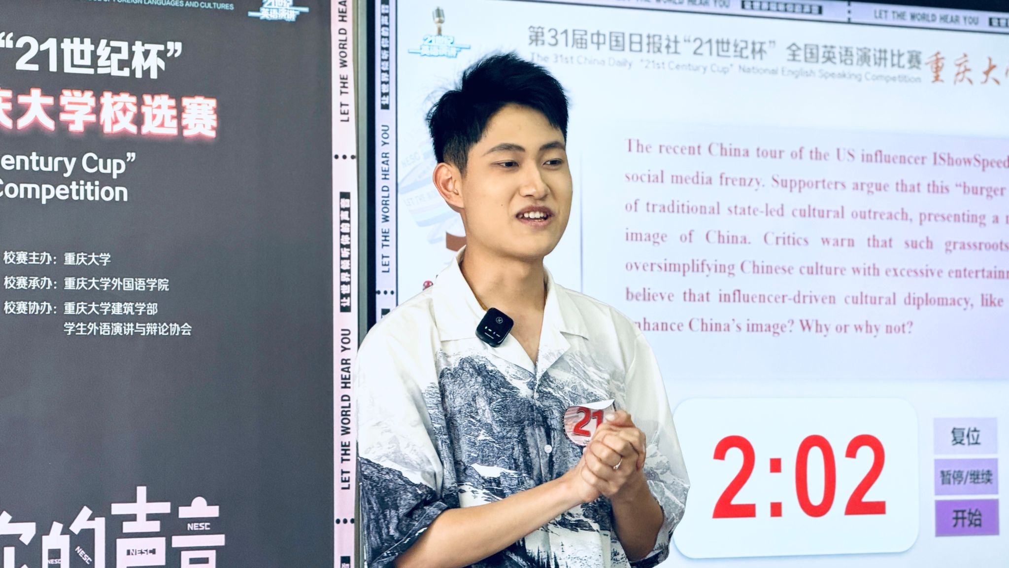 承办,重庆大学建筑学部、学生外语演讲与辩论协会协办。比赛分为线上初赛和线下决赛两个阶段,共有来自全校25个学院近40个专业的学生参赛,最终23位选手晋级现场决赛。